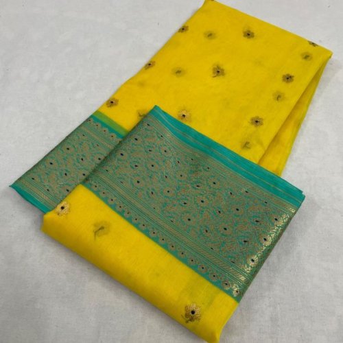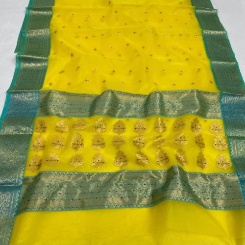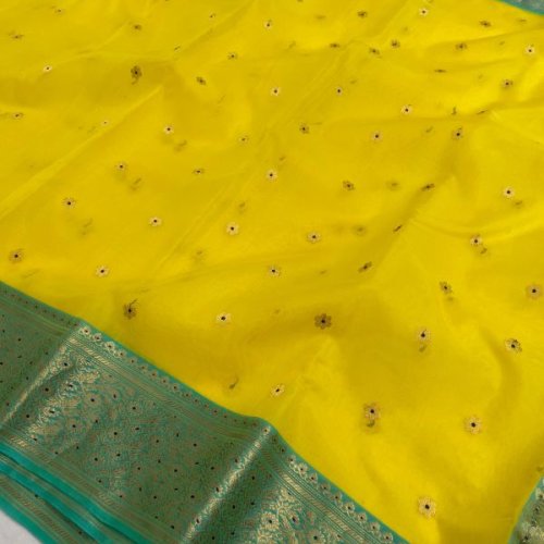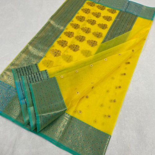 Floral Grid Yellow Banarasi Saree